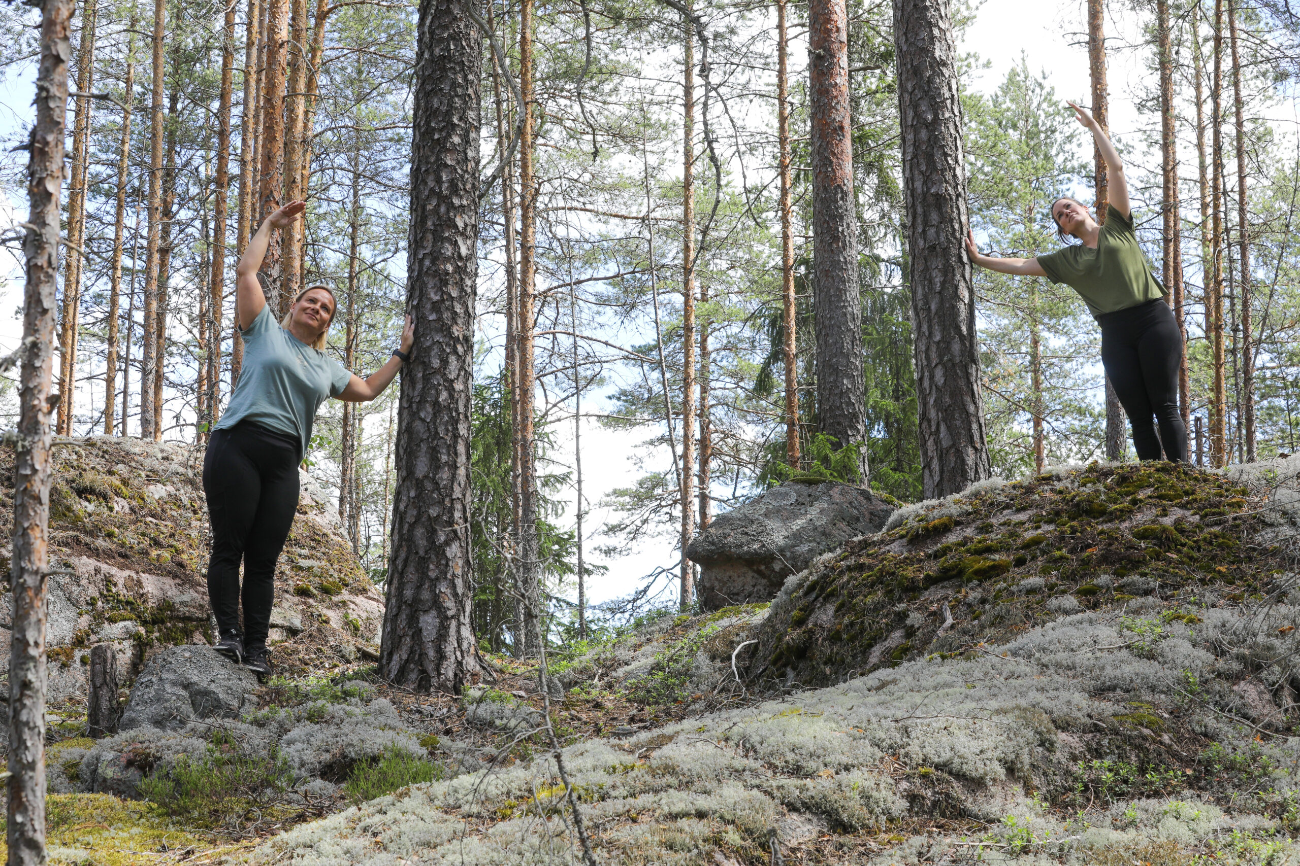 Luonnon keskellä metsäjoogaa ja kehonhuoltoa.